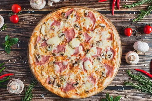 Пицца с сочной ветчиной и ароматными грибами - это классическое итальянское блюдо, которое пользуется популярностью по всему миру. Нежное сочетание ветчины и грибов на хрустящем тесте с соусом альфредо и сыром создает неповторимый вкус, который порадует любителей пиццы. Идеально подходит для вечеринок, посиделок с друзьями или просто для уютного ужина вдвоем.