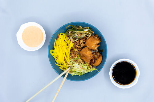 Поке с креветкой-темпура NEW — это свежий и необычный вариант популярного блюда поке, в котором основой служит рис, а главной изюминкой выступает хрустящая креветка в темпуре. Это сочетание придаёт блюду уникальный вкус и текстуру. Подаётся с разнообразными свежими овощами, авокадо и соусами, создавая насыщенное и сбалансированное угощение. Идеально подходит для любителей японской кухни и здорового питания.