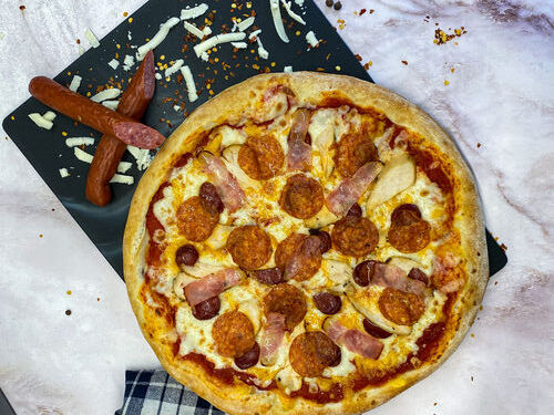 Пицца Мясная - это классическая пицца, приготовленная с использованием аппетитного мясного начинки. Тонкое хрустящее тесто, обильно покрытое сочными кусочками бекона, куриного мяса, ветчины, пепперони и других видов мяса, а также сыром и томатным соусом, создают неповторимый вкус и аромат этой пиццы. Пицца Мясная идеально подойдет для любителей мяса и насыщенных вкусов.