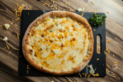 Пицца 4 сыра - это классическая итальянская пицца, приготовленная на тонком хрустящем тесте и покрытая четырьмя различными видами сыра. Вкусное сочетание моцареллы, пармезана, горгонзолы и дор-блю создает неповторимый аромат и неповторимый вкус этого блюда.